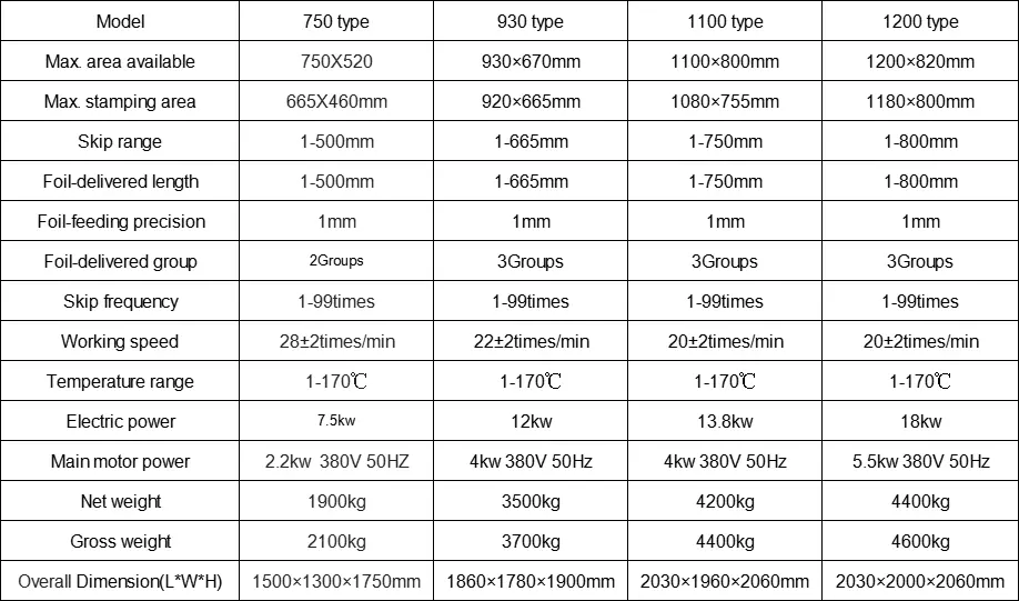 De bruges til varm stempling af alle slags farvet aluminiumsfolie og prægning eller dø, der skærer forskellige slags billeder, Tøjbilletter, lykønskningskort, varemærke, bøger dækker,note bog, emballagekartoner, papirbokse, papirposer, korkpude, mapper og anden dekoration og udskrivningsmaterialer af høj kvalitet osv. De passende produktmaterialer inkluderer papir, pap, plastik (PVC, PP, PE), læder, træ og kork osv., Så de ernødvendigt udstyr til udskrivning af fabrik, emballagevirksomhed og kontorpapirproducent.